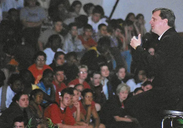 Speaking in hundreds of public schools, private academies, and universities to thousands of young people.