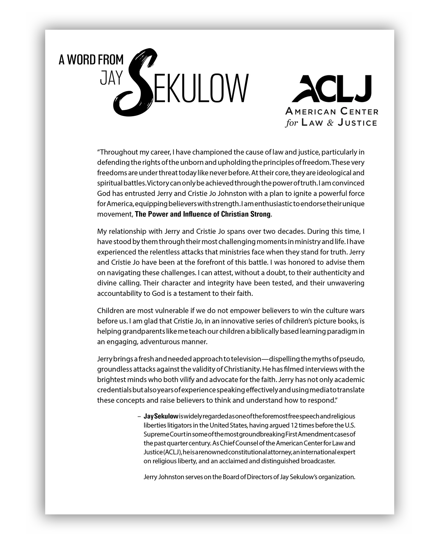 • Jerry Johnston serves on the Board of Directors of Jay Sekulow’s Organization -